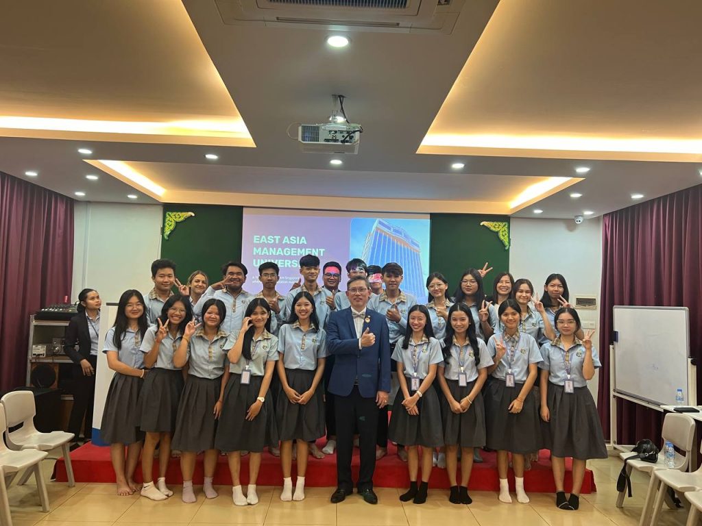 East Asia Management University (EAMU) had the pleasure of visiting Go Global School in Siem Reap, where we met with the school management and students to showcase our academic programs and scholarship opportunities. We sincerely thank Vice Principal Vet Sreymao and her team for their warm hospitality. EAMU wishes all Go Global students great success in their upcoming Bac II exams and looks forward to supporting their future academic journeys. Date: 24th November 2024 Location: Go Global School in Siem Reap