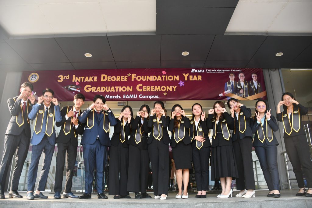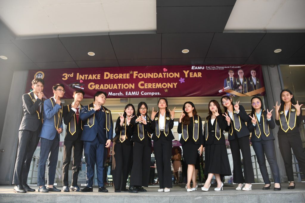 East Asia Management University (EAMU) proudly celebrated the graduation of our 3rd Intake Foundation Year students on 7th March 2024. The ceremony marked a significant milestone for our graduands, who were joined by their families, friends, faculty members, and fellow students in a joyous and memorable occasion.