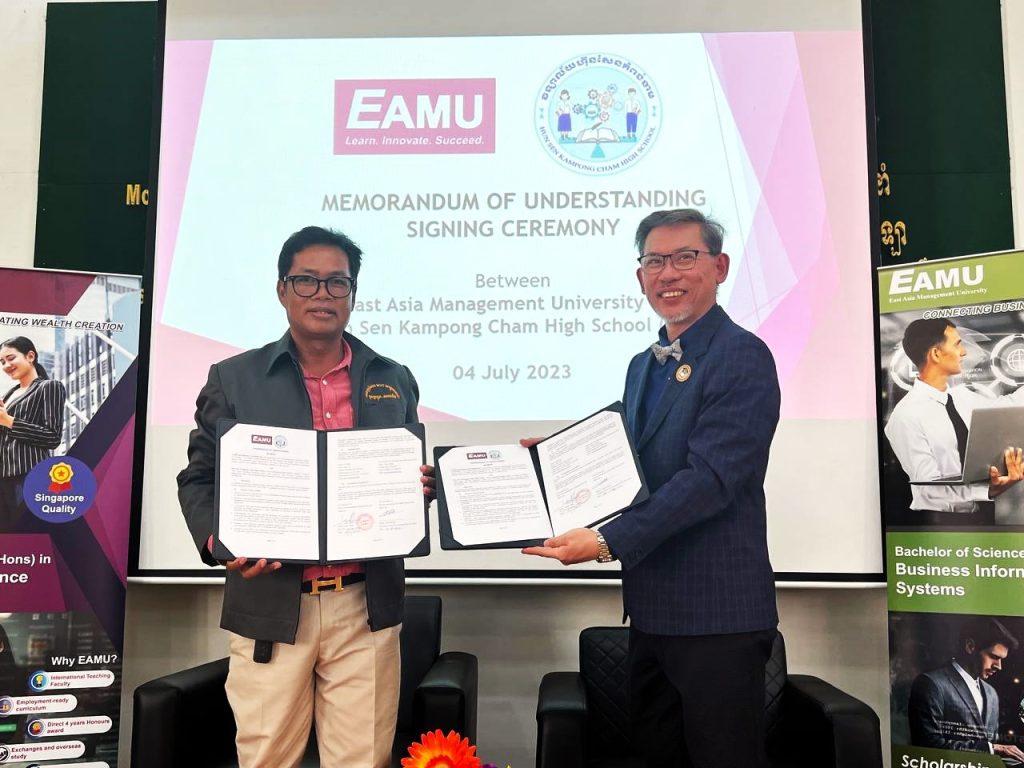 East Asia Management University (EAMU) proudly marked a significant milestone on 4 July 2024, with the signing of a Memorandum of Understanding (MOU) with Hun Sen Kampong Cham High School – New Generation School (NGS).